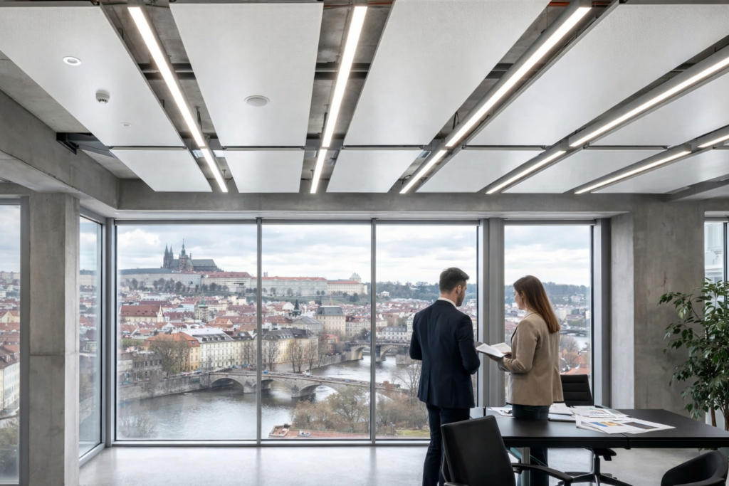 V návaznosti na předchozí článek (Strop místo klimatizace: Nové typy topně chladicích stropů a proč je právě teď ta správná chvíle) pokračujeme v představování stropních řešení Geocore. Minule jsme se zaměřili na systém VENTIS. Tentokrát na systém AURA, který posouvá koncept integrovaného stropu směrem k maximální vizuální čistotě a současně zachovává vysoký technický výkon.