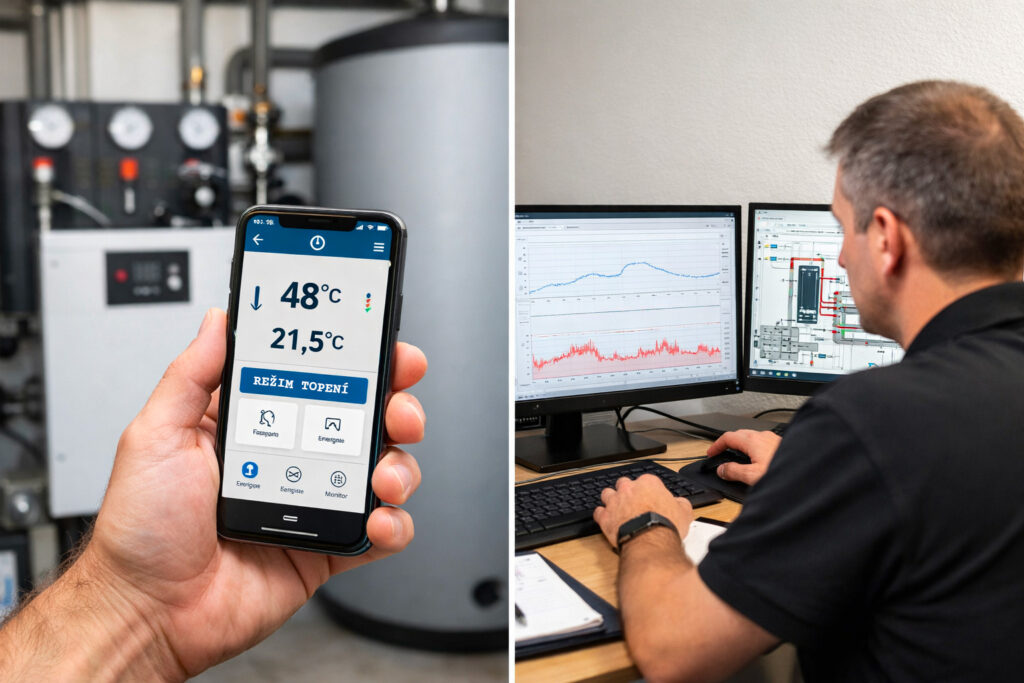 - Dálkový dohled nad tepelným čerpadlem dnes není doplněk, ale zásadní součást spolehlivého provozu. U systémů navržených společností Geocore umožňuje průběžně sledovat klíčové provozní parametry, včas zachytit odchylky a v řadě případů odstranit problém bez fyzického zásahu technika.