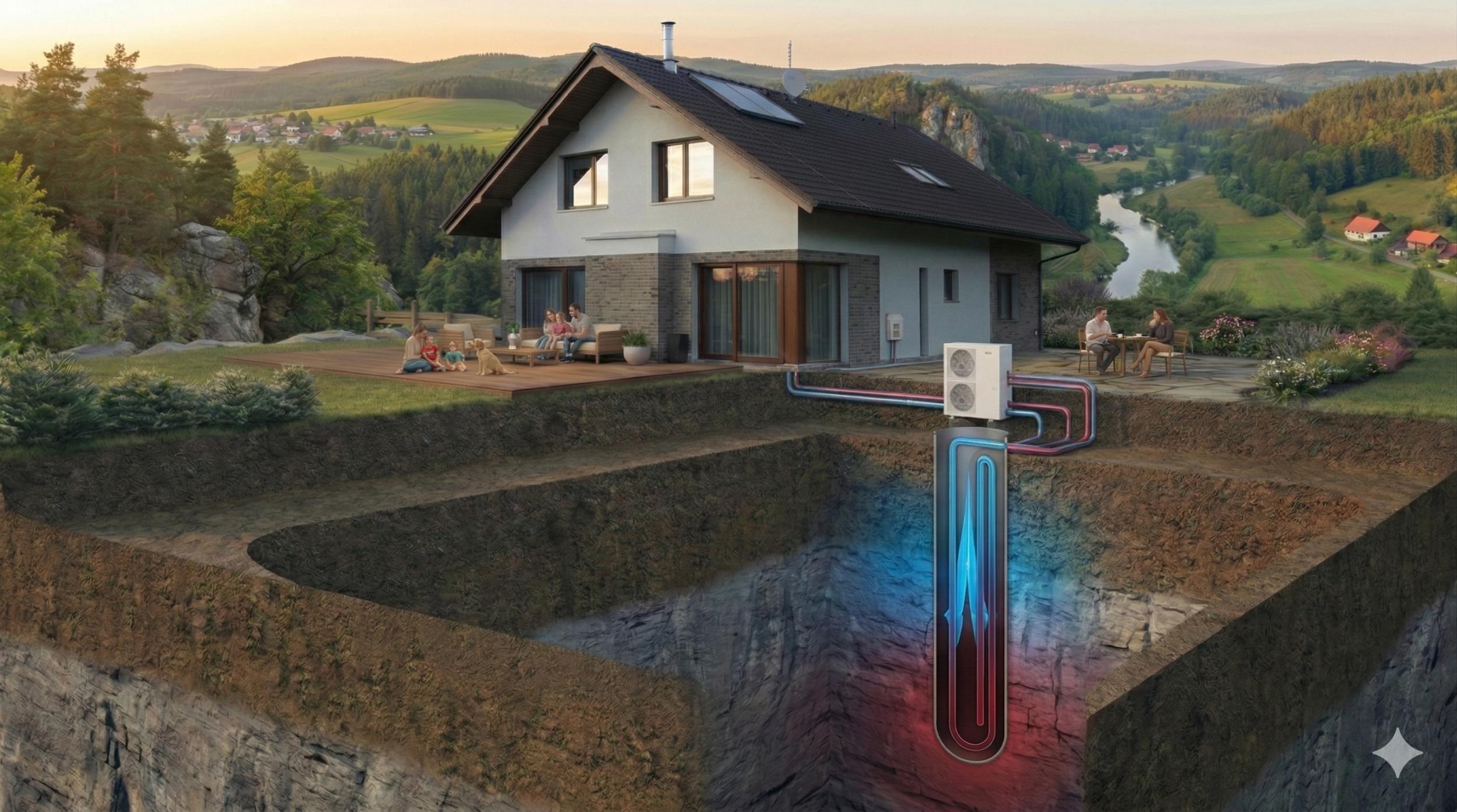Zbavte se závislosti na nevyzpytatelných cenách plynu a elektřiny. Geotermální vrty využívají stabilní teplotu země — topí v zimě i chladí v létě, a to za zlomek ceny klasické klimatizace.