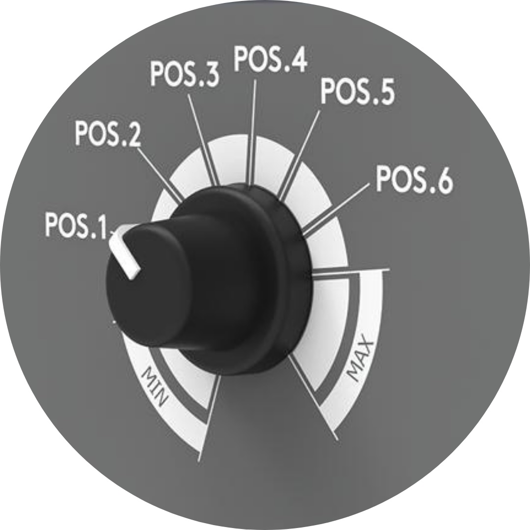 Stálá regulace průtoku vzduchu s jednoduchým ovládacím panelem přístupným zvenčí jednotky. Konstantní regulace průtoku vzduchu zaručuje stejnou úroveň ochrany před virovou kontaminací bez ohledu na míru zanesení filtru.