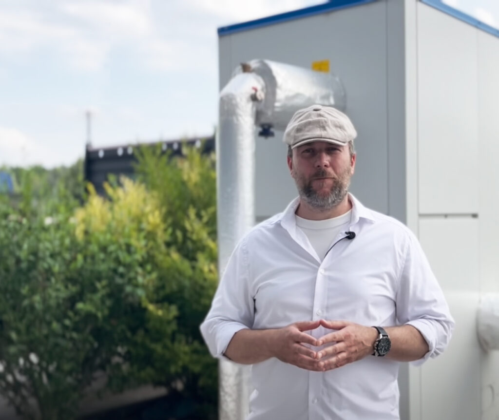 Právě se nacházíme ve výrobním areálu firmy, kde společnost Geocore realizovala instalaci vzduchového tepelného čerpadla o výkonu 80 kW. Investor se rozhodl nahradit původní plynový kotel moderním systémem, který je schopný ohřát vodu až na 65 °C, a to i při radiátorovém vytápění – což je v průmyslových prostorách klíčový požadavek.